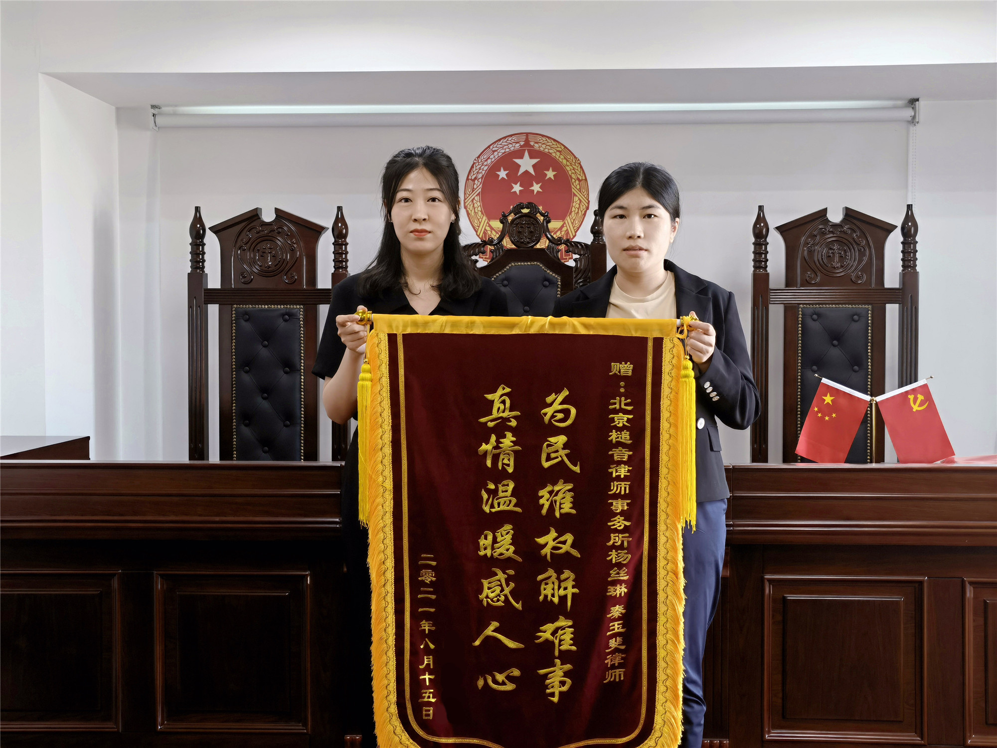 二位律师的工作也得到了当事人的肯定,并向二位律师送达锦旗,以表感谢。